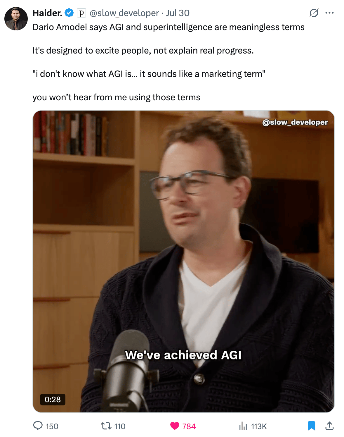 When the CEO of Anthropic says AGI makes no sense, you should trust him.