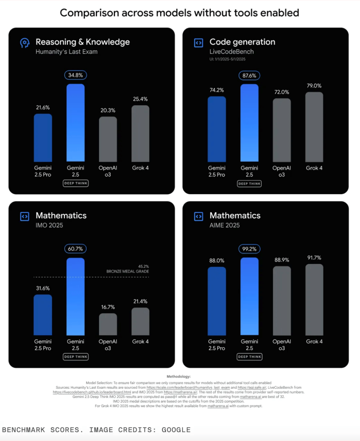 Gemini 2.5 achieves 34.8% on reasoning tasks while scoring 87.6% on code generation. No single model excels at everything.