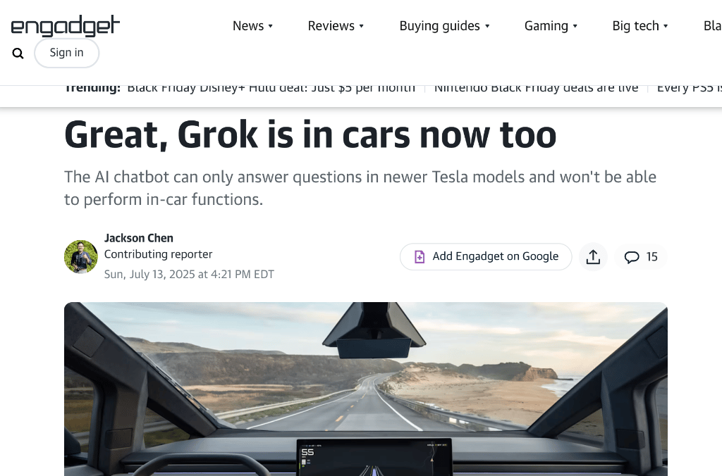 Grok is now fully integrated into newer Tesla models, allowing drivers to discuss holiday gifts with their car while commuting. I tried it this weekend, and it still has a way to go. But you can clearly see how car rides, commutes, and school pickup-line-hell will soon be prime dialogue-driven search (pun intended).